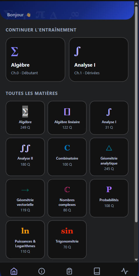 Fiches, quiz, examens et suivi de progression, réunis dans une seule application.