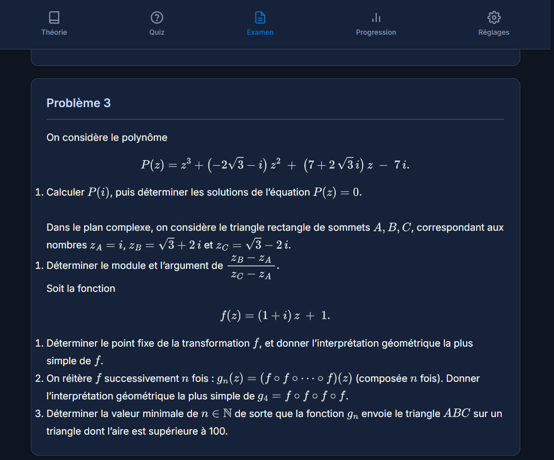 Fiches, quiz, examens et suivi de progression, réunis dans une seule application.